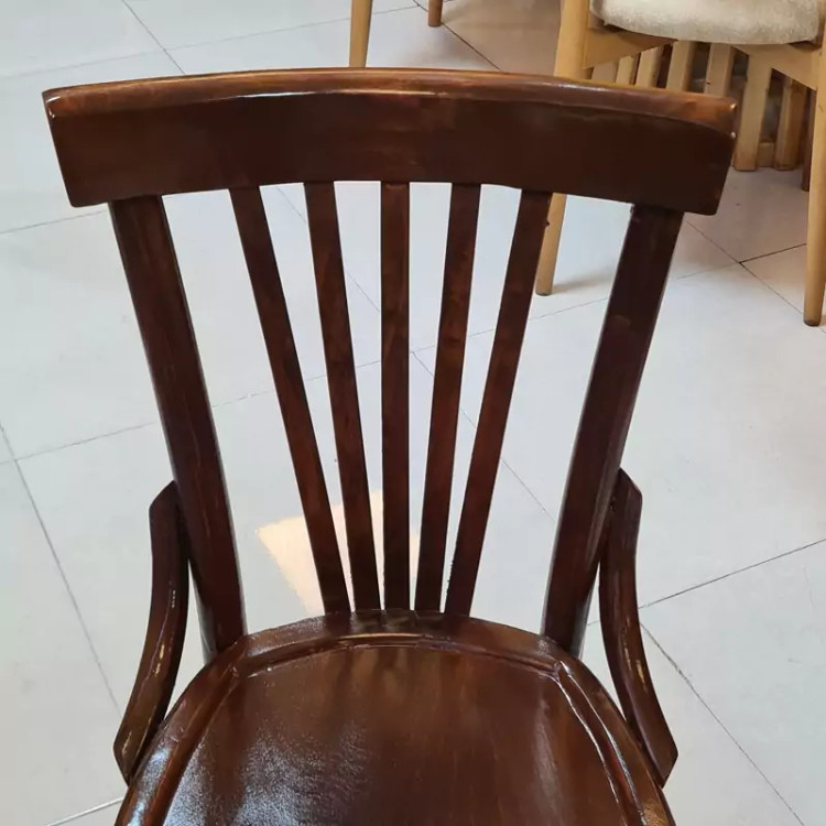 صندلی مدل لهستانی 5تیرک ⭕️نکتهی مهم : این مدل کار شرکتی است و با کار های کارگاهی مقایسه نکنید🙏 🟢جنس چوب = صددرصد چوبه توسکا 🟢پایه های صندلی دور تا دور قید خورده که برای استحکام بیشتره صندلی نصب شده 🟢 رنگ چوب : فندقی تیره 🟣برای تغییره رنگه چوب 10 الی 14 روز کاری زمان لازمه 🟣هزینه پسکرایه و باربری و اسنپ به عهده مشتری عزیز میباشد🌹❤️ رضایت شما هدف ماست ✅️