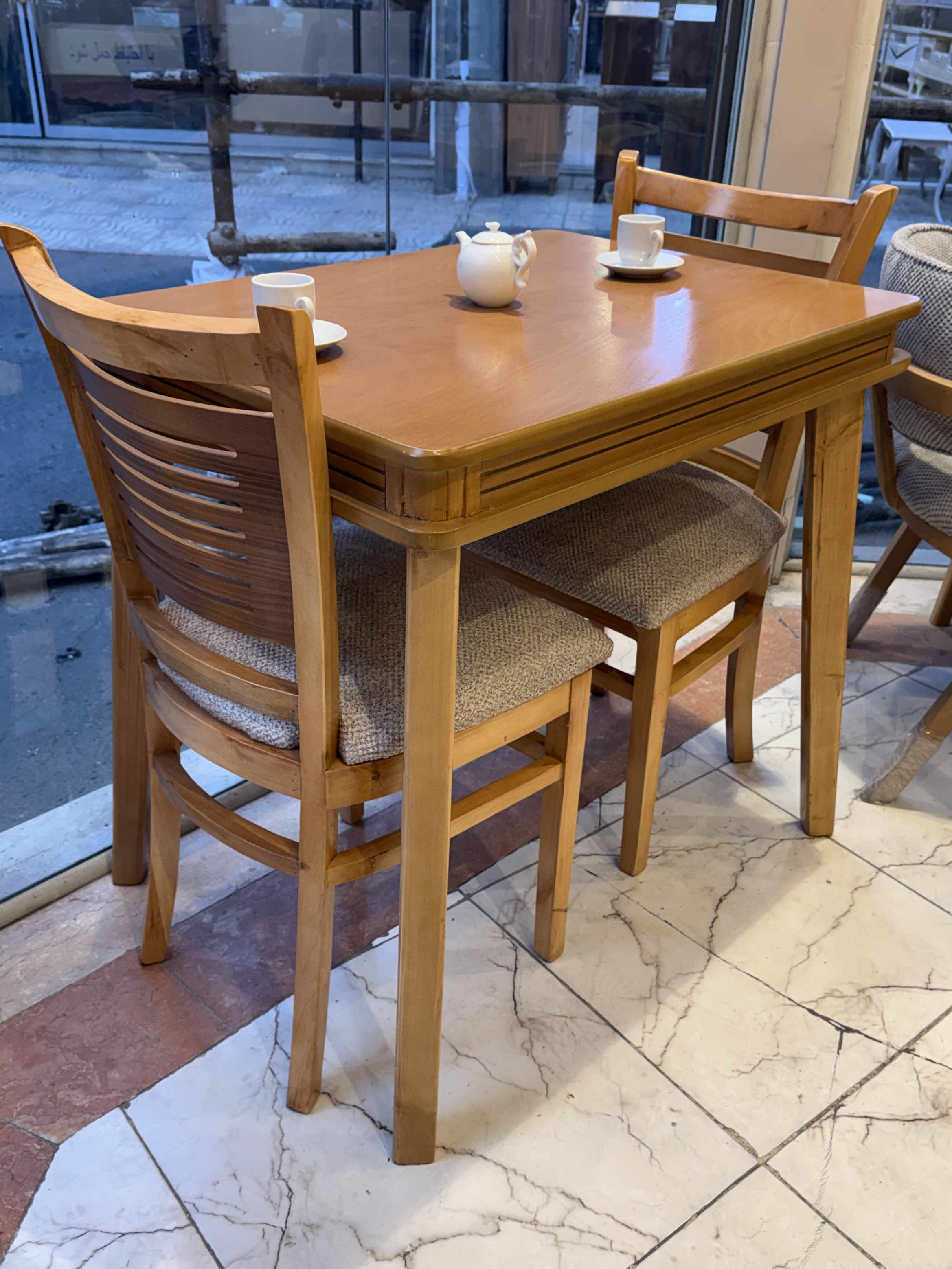 میز و صندلی ناهارخوری 2 نفره مدل شیلری یه کاره مینیمال و زیبا 🟢جنس چوبه صندلی: صددرصد چوبه توسکا 🟢جنس پارچه : به دلخواه مشتری عزیزمون هم رنگ هم جنس پارچه قابل تغییره 🟢پایه های صندلی قید ضربدری خورده است 🔴جنس صفحه میز: MDF روکش راش 🔴جنس پایه میز : چوبه روسی 🔴پایه میز و صفحه به صورت پیج و مهره است و قابلیت بازو بسته شدن دارد🔴ابعاد صفحه میز: 60×80 سانتیمتر 🟣برای تغییره رنگه چوب 10 الی 14 روز کاری زمان لازمه 🟣هزینه پسکرایه و باربری و اسنپ به عهده مشتری عزیز میباشد🌹❤️ رضایت شما هدف ماست ✅️