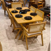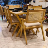 میز و صندلی ناهار خوری 6 نفره مدل مینرال ⭕️نکتهی مهم : این مدل کار شرکتی است و با کار های کارگاهی مقایسه نکنید🙏 🟢جنس صفحه میز: MDF روکش بلوط 🟢جنس پایه میز : چوبه روسی 🟢پایه میز به صورت کلاف است و صفحه روی آن قرار میگیرد 🟢ابعاد صفحه میز: 160×90 سانتیمتر 🔴جنس چوبه صندلی: صددرصد چوبه راش گرجستان 🔴پشت صندلی ها حصیر بامبو بافته شده است 🔴پارچه : به دلخواه مشتری عزیزمون هم رنگ هم جنس پارچه قابل تغییره 🔴رنگ چوب : خود رنگ 🔴جنس اسفنج نشیمن: 20 کیلویی ویژه 🟣برای تغییره رنگه چوب و پارچه 10 الی 14 روز کاری زمان لازمه 🟣هزینه پسکرایه و باربری و اسنپ به عهده مشتری عزیز میباشد🌹❤️ رضایت شما هدف ماست ✅️
