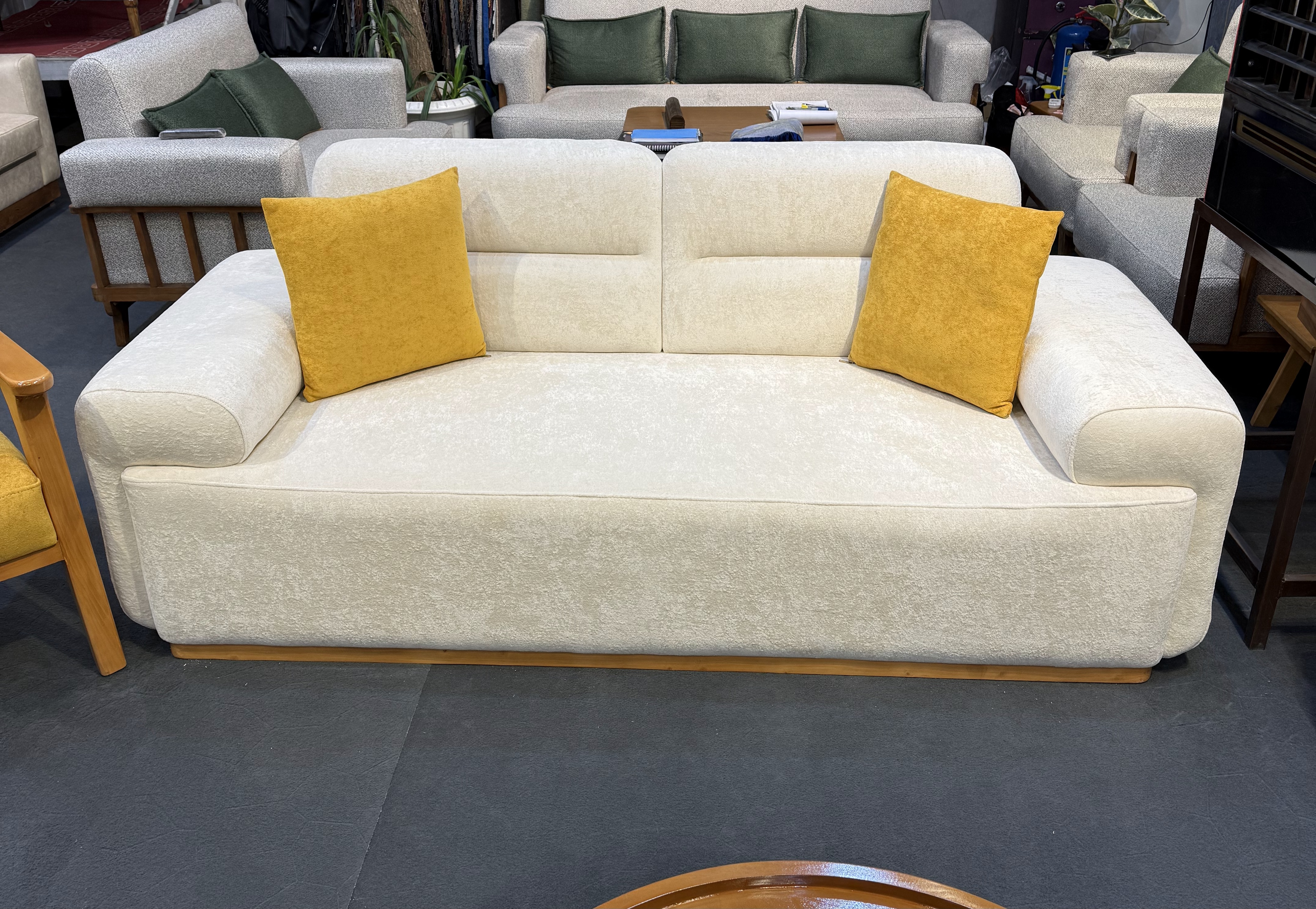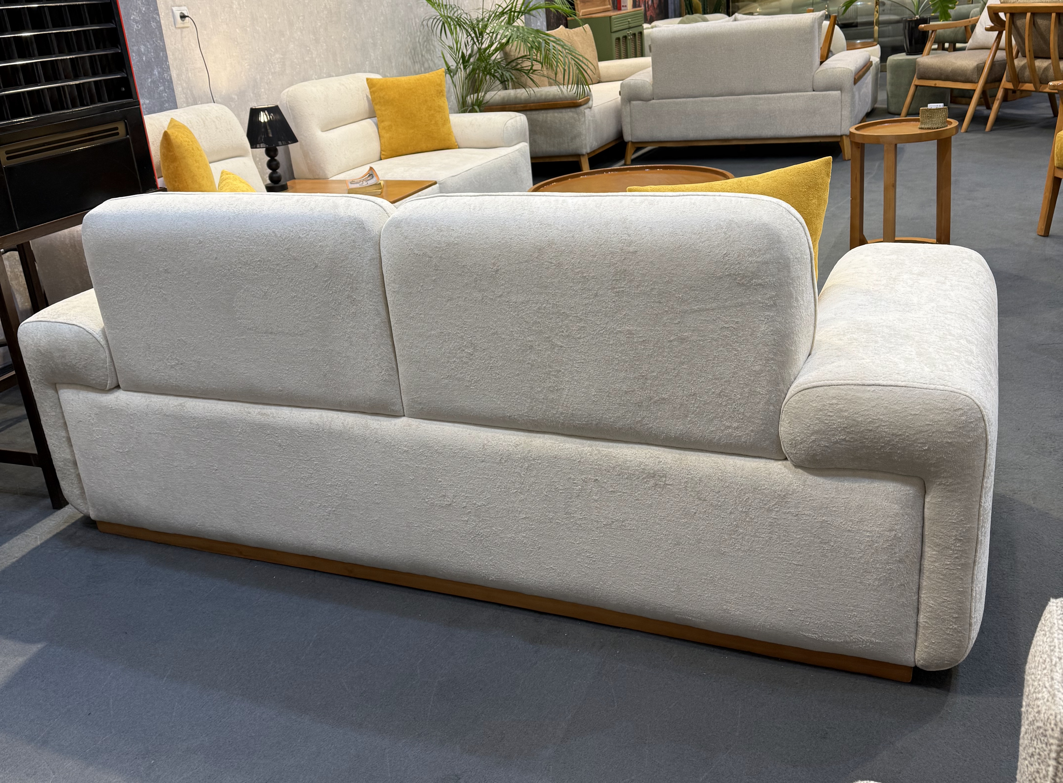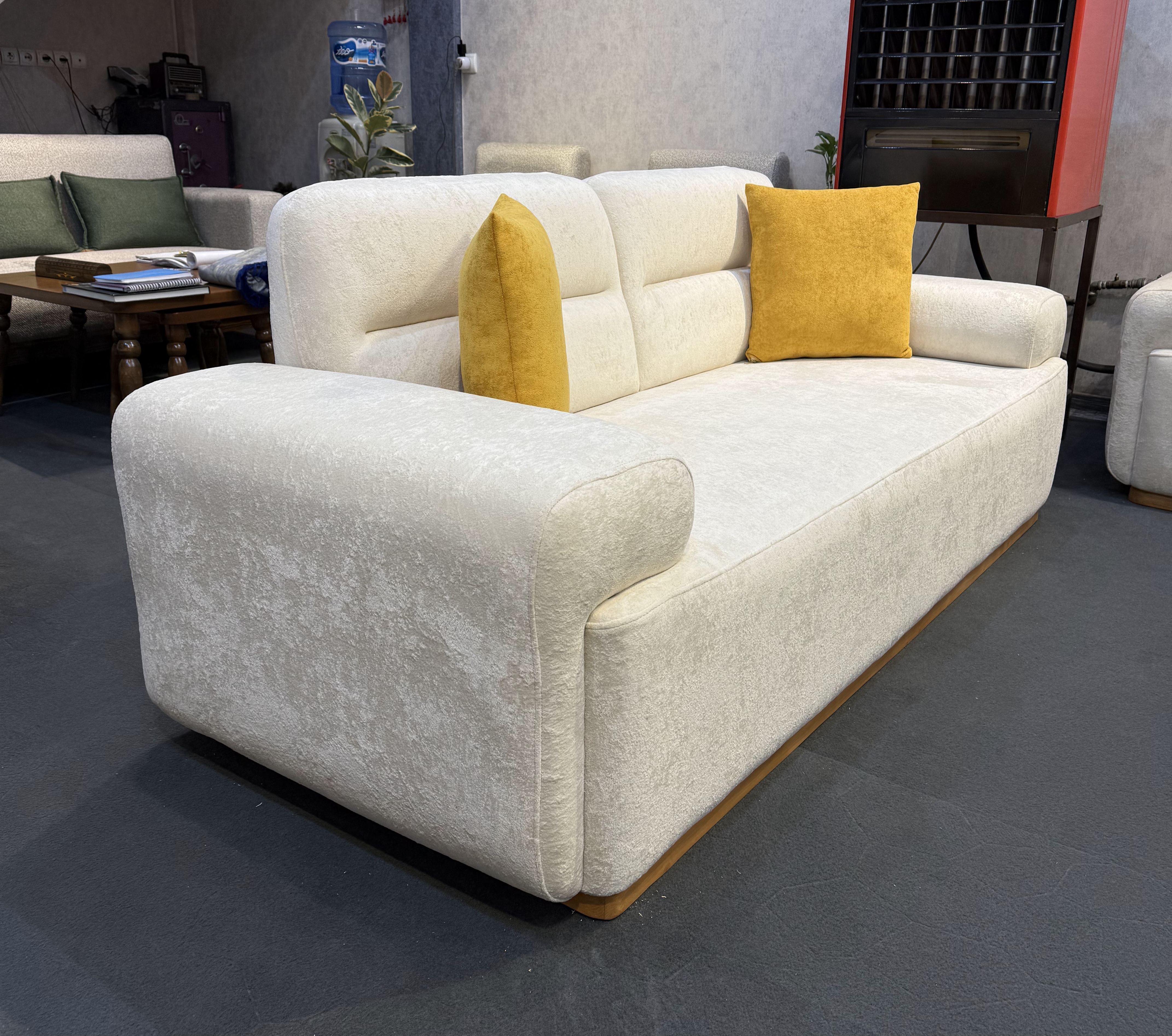🟢پایه مبل به صورت الوار یک تیکه است که دور تا دور کار کشیده شده است