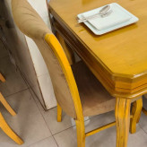 میز و صندلی غذاخوری 4 نفره مدل میزه یاقوت همراه با صندلی های مدله سِون صفحه میز ام دی اف روکش راش پایه میز چوب روس و پیچو مهره ای است و قابل بازو بسته شدن است کل چوب صندلی چوب روسه این مدل کارمون هم رنگ بندی پارچه داره هم رنگ پندی چوب به دلخواه مشتری عزیز عوض میشود ابعاد میز 4 نفره این کار( 120×80) 🔴برای تغییره رنگه چوب و پارچه 10 روز کاری زمان لازمه 🟢هزینه پسکرایه و باربری و اسنپ به عهده مشتری عزیز میباشد🌹❤️